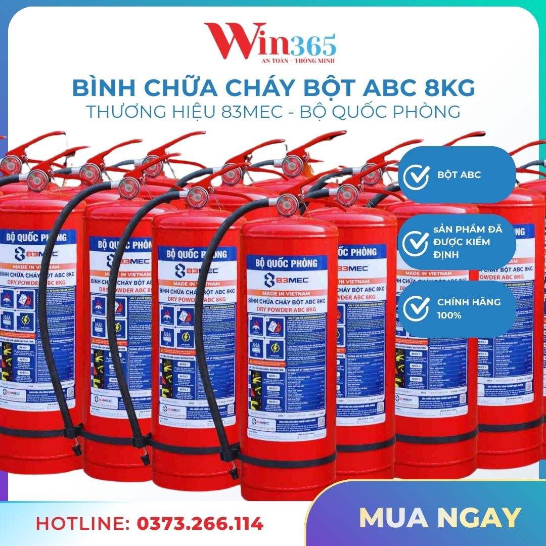 Một trong những sản phẩm được nhiều đơn vị tin dùng hiện nay chính là Bình chữa cháy bột ABC 8kg 83MEC Bộ quốc phòng – dòng bình chữa cháy được sản xuất bởi 83MEC, đơn vị trực thuộc Tổng cục Công nghiệp Quốc phòng (BQP). Trong hệ thống phòng cháy chữa cháy (PCCC), việc trang bị bình chữa cháy phù hợp có vai trò cực kỳ quan trọng để xử lý sự cố ngay từ giai đoạn đầu.